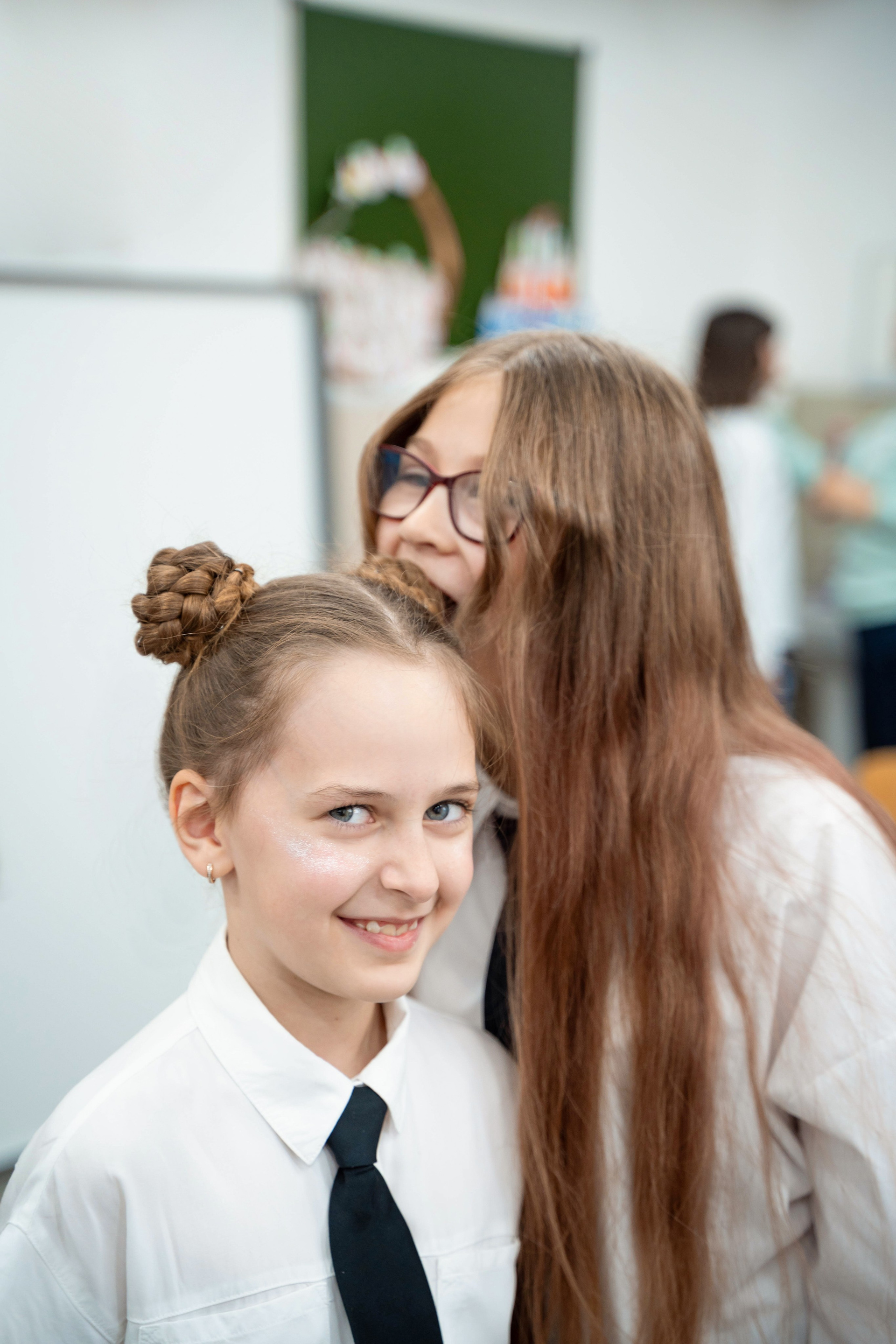 и вторая — В ПОДАРОК — в стенах родной школы: тот самый класс, коридоры, лестница — всё, что через несколько лет станет воспоминаниями.